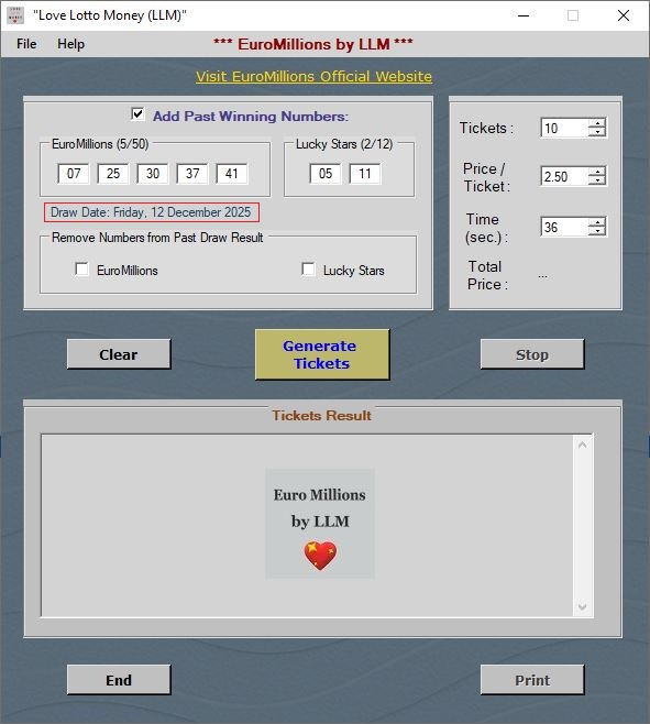 🎁 EuroMillions by Love Lotto Money Includes: ✔️ Instant digital download ✔️ Lifetime license (no renewal costs) ✔️ Free updates for all future draws ✔️ Works with all supported European lotteries