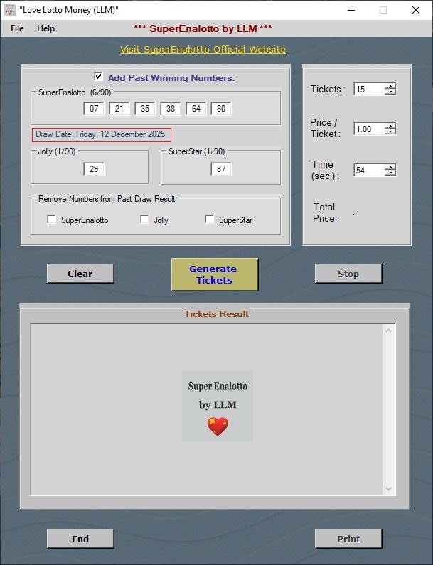 🎁 SuperEnalotto by Love Lotto Money Includes: ✔️ Instant digital download ✔️ Lifetime license (no renewal costs) ✔️ Free updates for all future draws ✔️ Works with all supported Italian lotteries